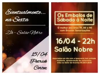 Convites: associado em dia com o quadro social do Clube tem entrada gratuita mediante apresentação da carteirinha/